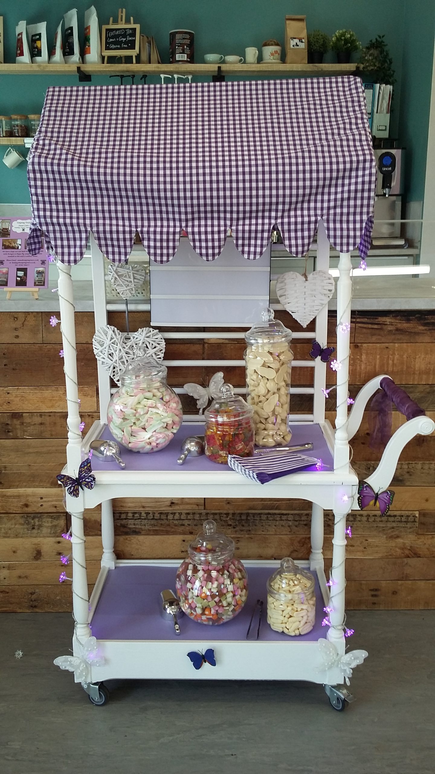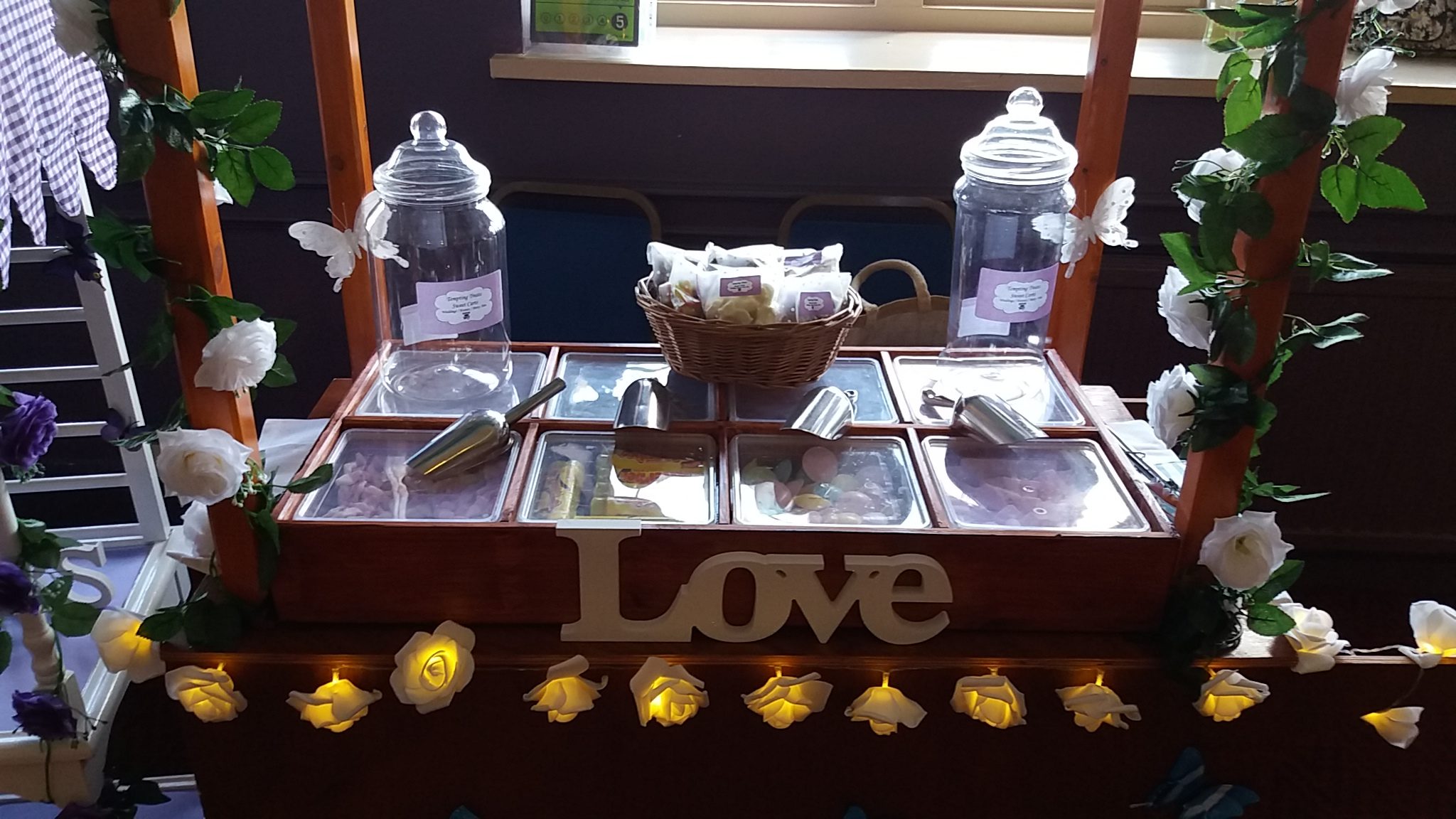 Photo Gallery Sweet CartsVarious themes. Contact us SweetsDon't see your favourite? Contact us, there are many more choices! Sweet gifts and ideasExample Treat gifts, Sweet bags, Cones and Jars. DecorationsVarious decorations and miscellaneous items, examples of available Lights and Light boxes. Don't see what you are after. Contact us.